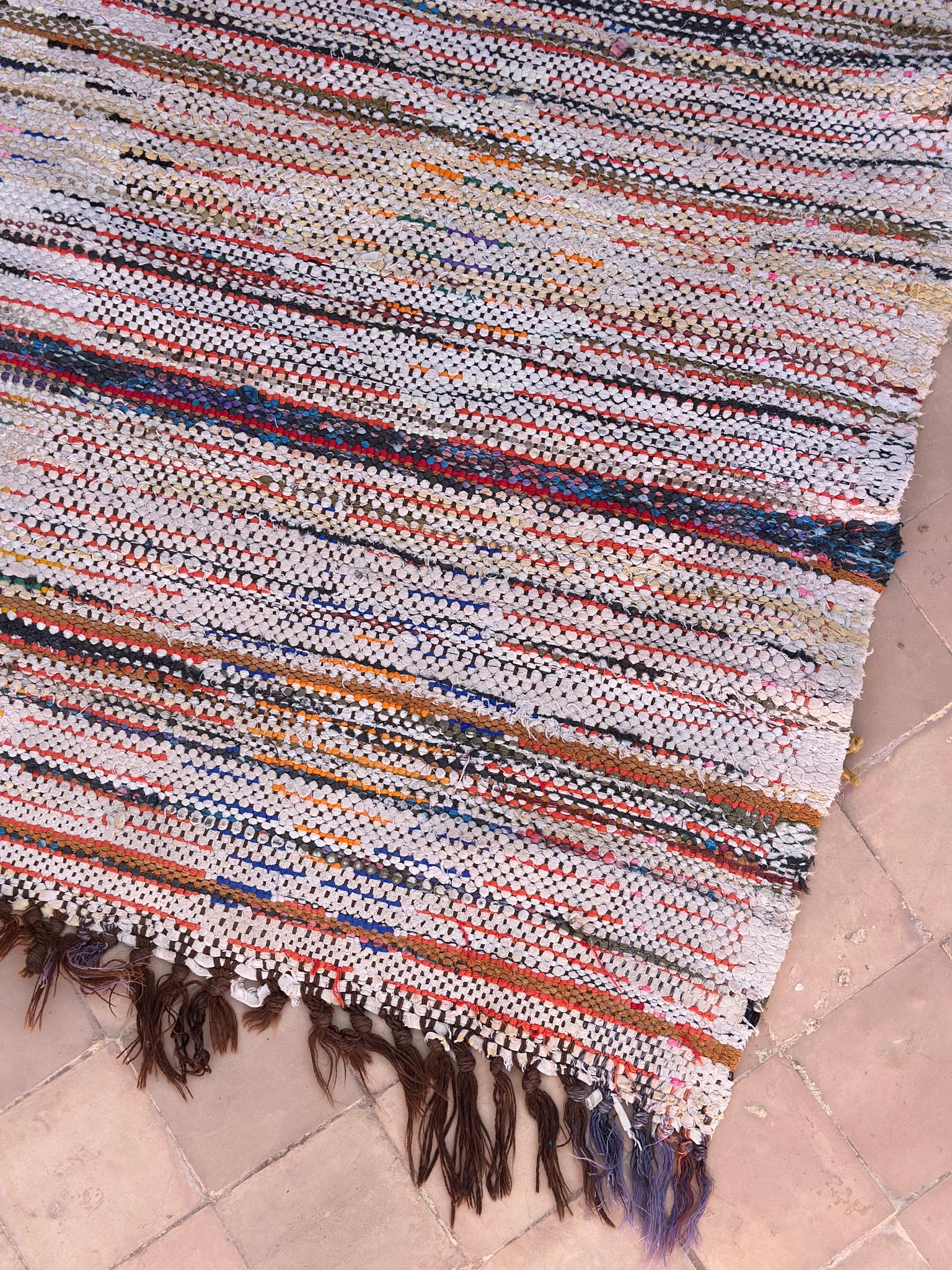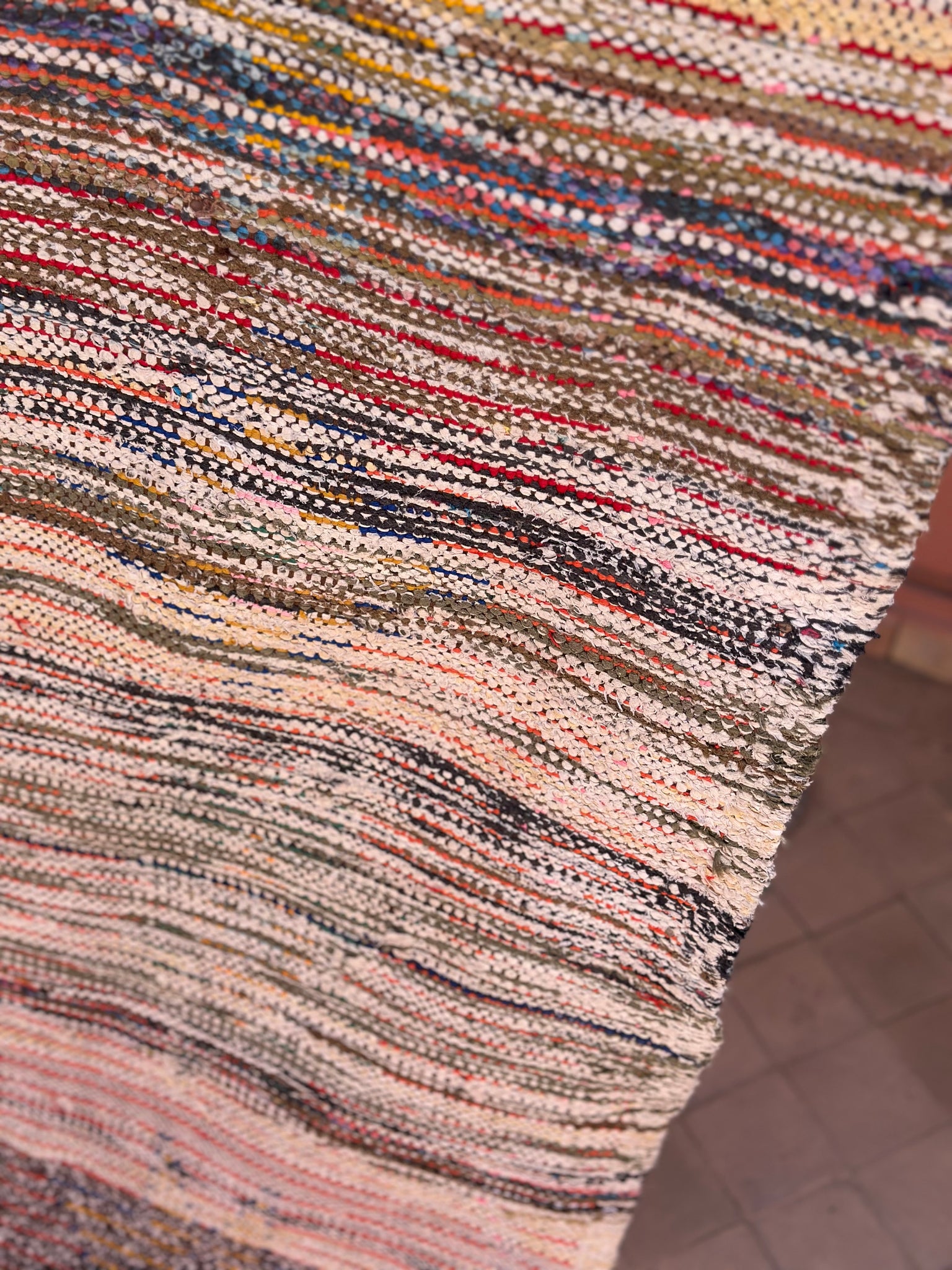 The texture is rich, plush, tactile — that irresistible boucherouite softness that feels alive underfoot. And like all true boucherouites, HENNA is woven entirely from upcycled fabrics: wool remnants, cotton strips, and recycled cloth transformed into art through the hands of rural Berber women.