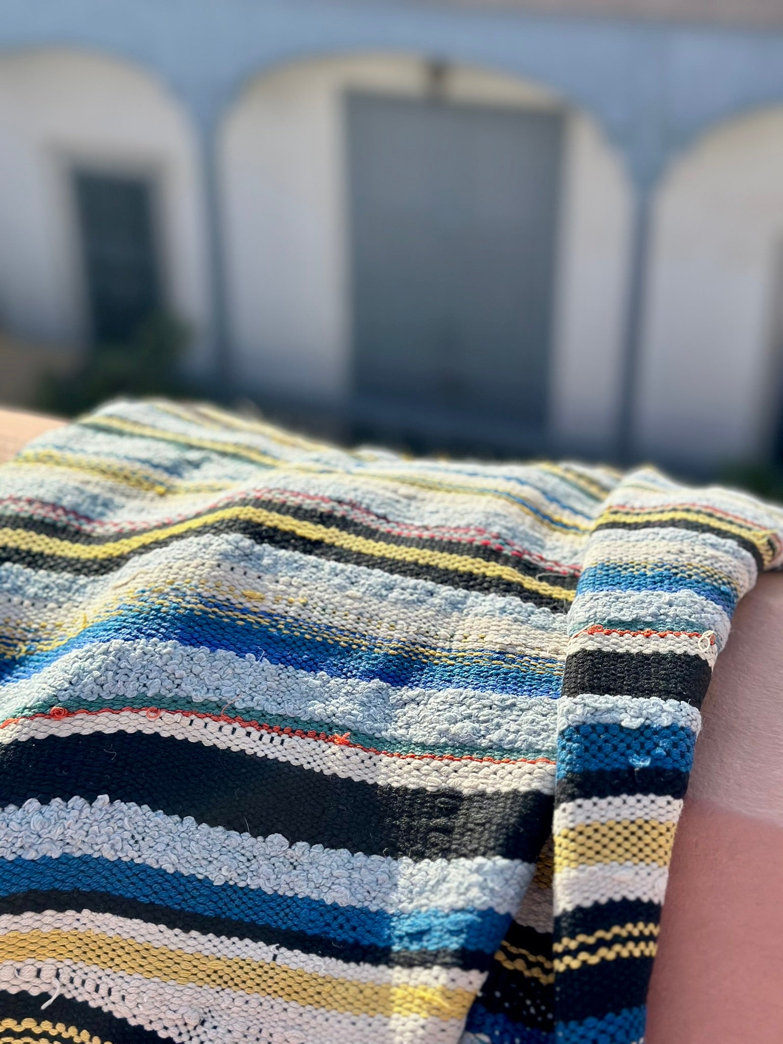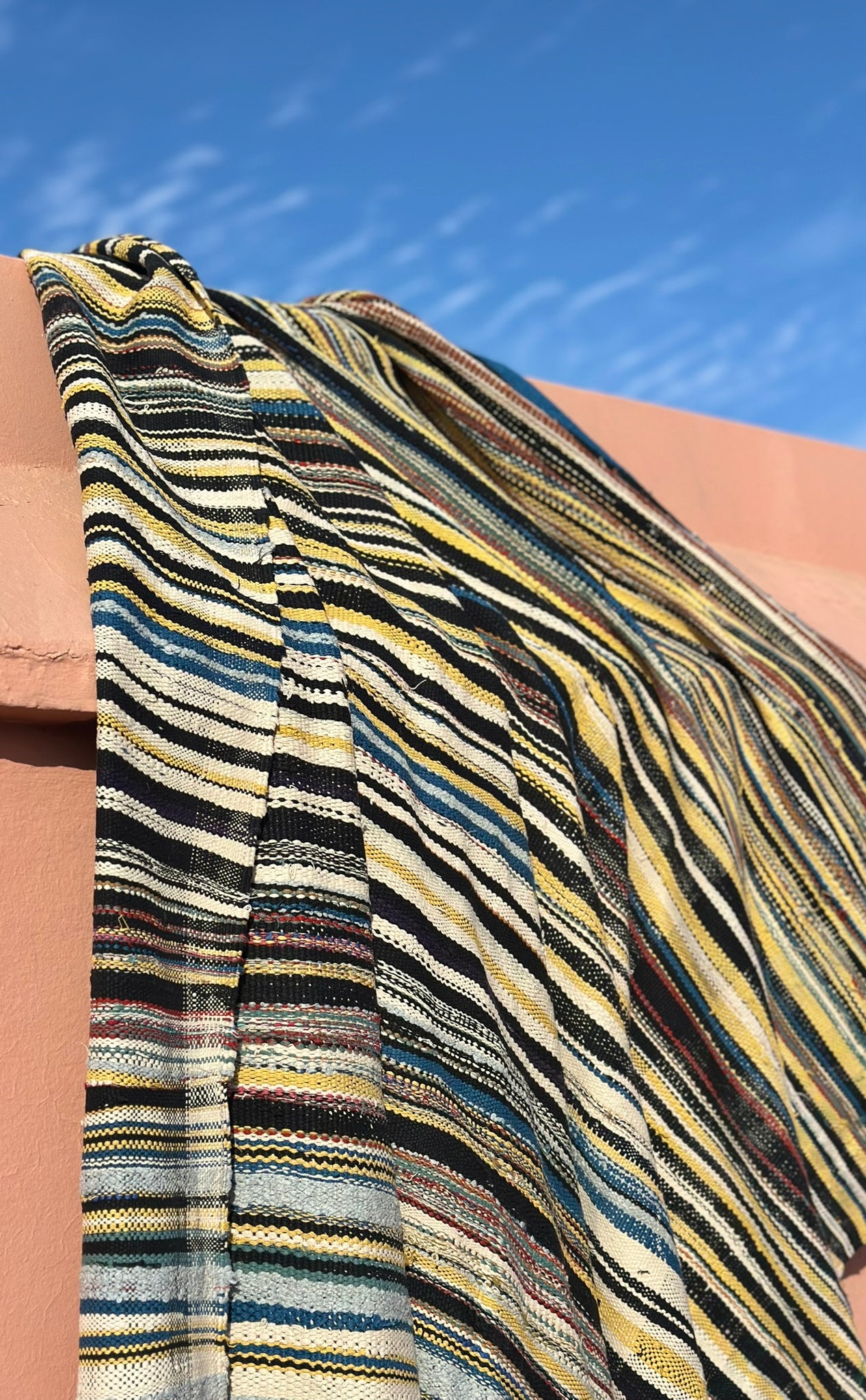 Handwoven in wool or cotton mixes, with rhythmic stripes and unexpected colour pops, they are incredibly versatile: