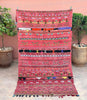 A feast of colour, symbolism and tradition — Boujad Tazrita is a true vintage gem from the Boujad region, woven entirely by hand and adorned with rows of Amazigh tribal motifs. Every band tells its own story: protective symbols, fertility marks, zigzag paths, ancestral patterns and playful colourwork appear like a woven diary of the woman who created it.