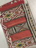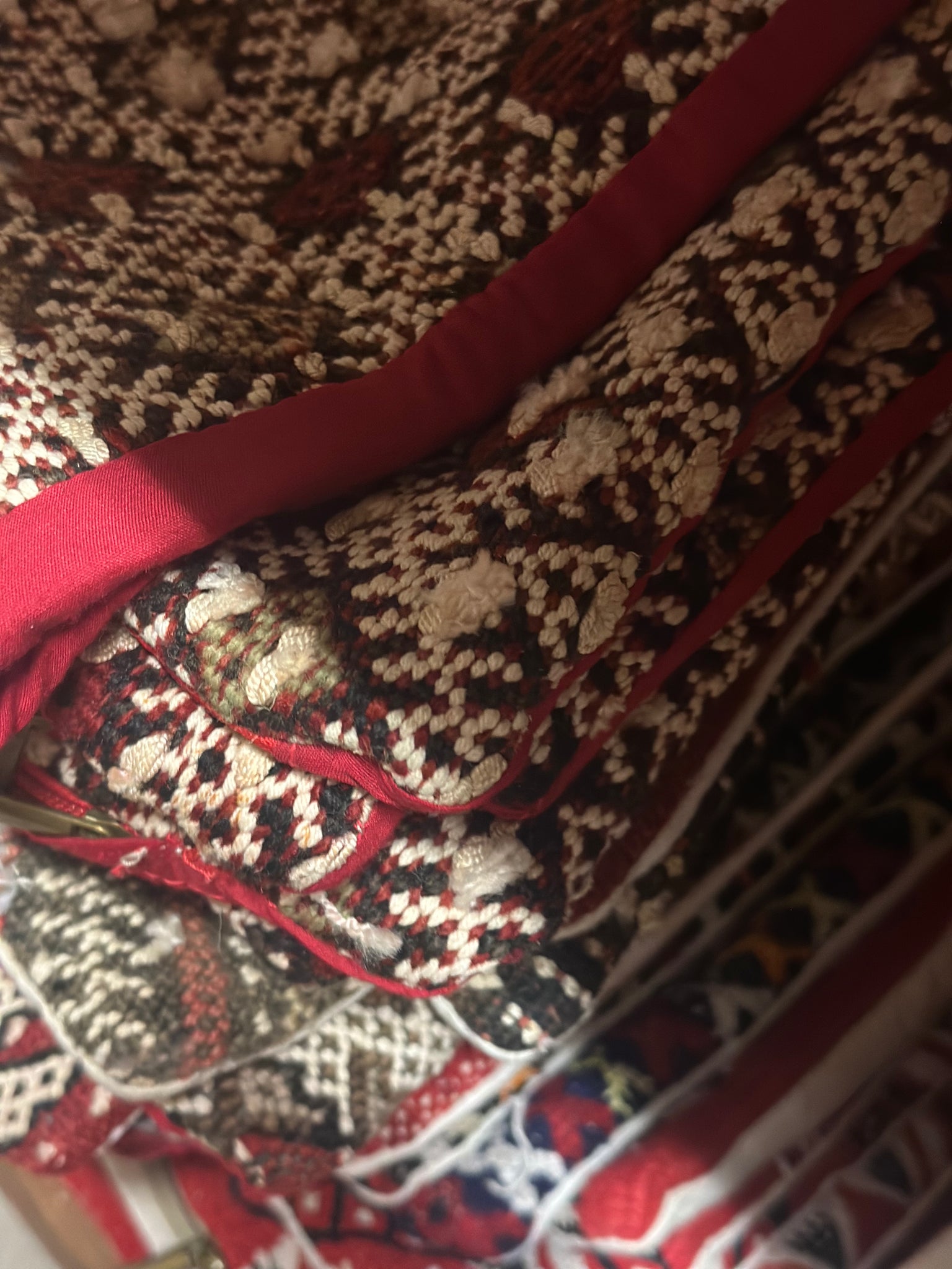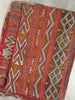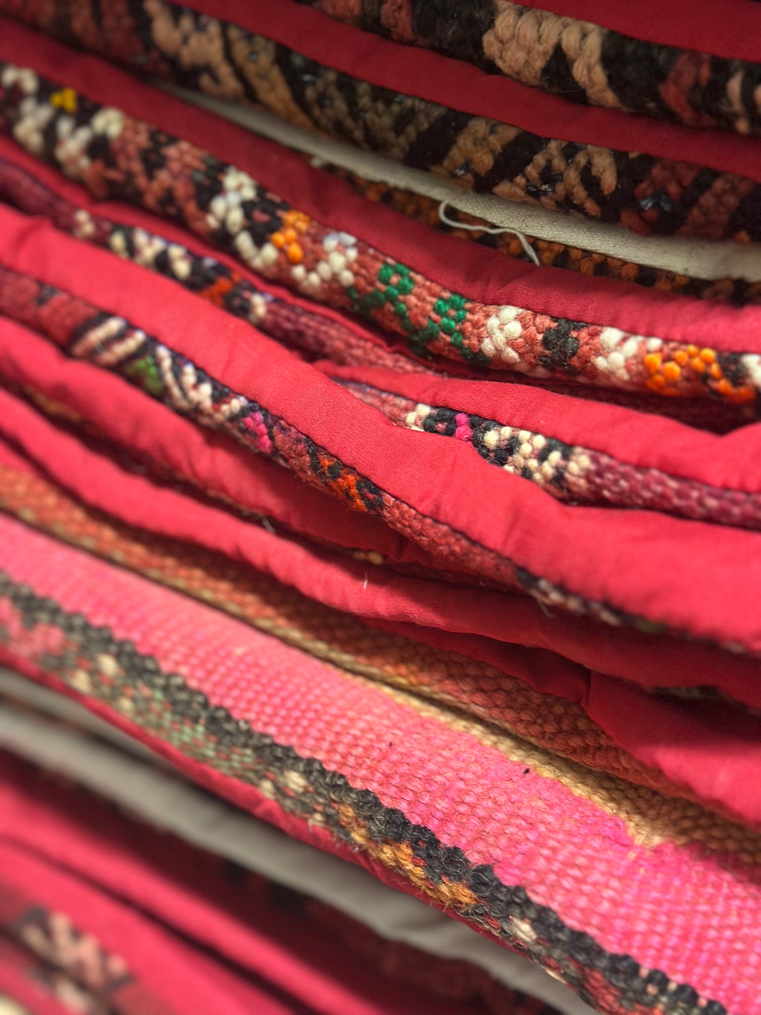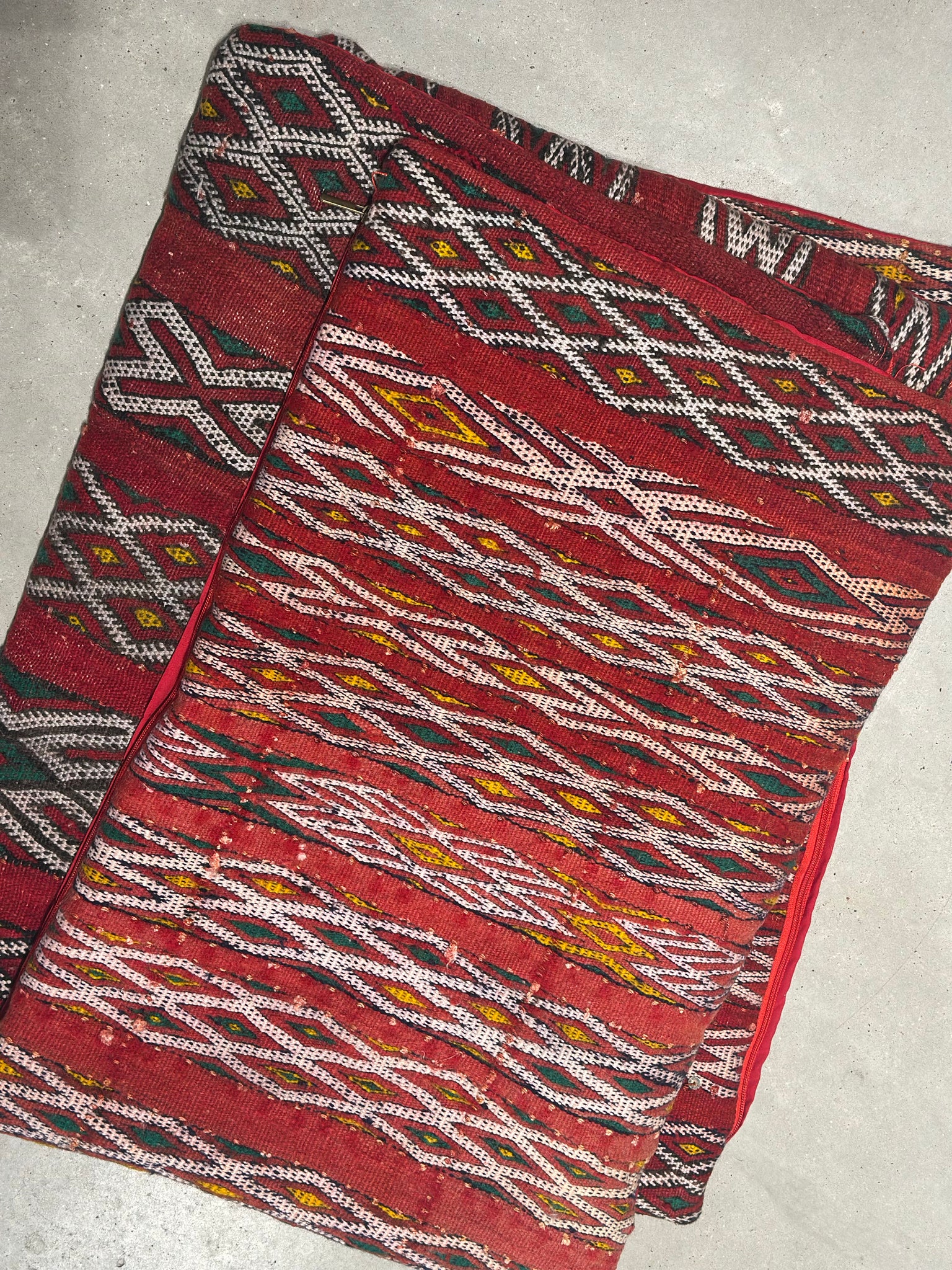 Made of vintage kelims, in a wonderful combo of authentic berber patterns and red base. Boho perfect, doublesided or with cotton keria back.