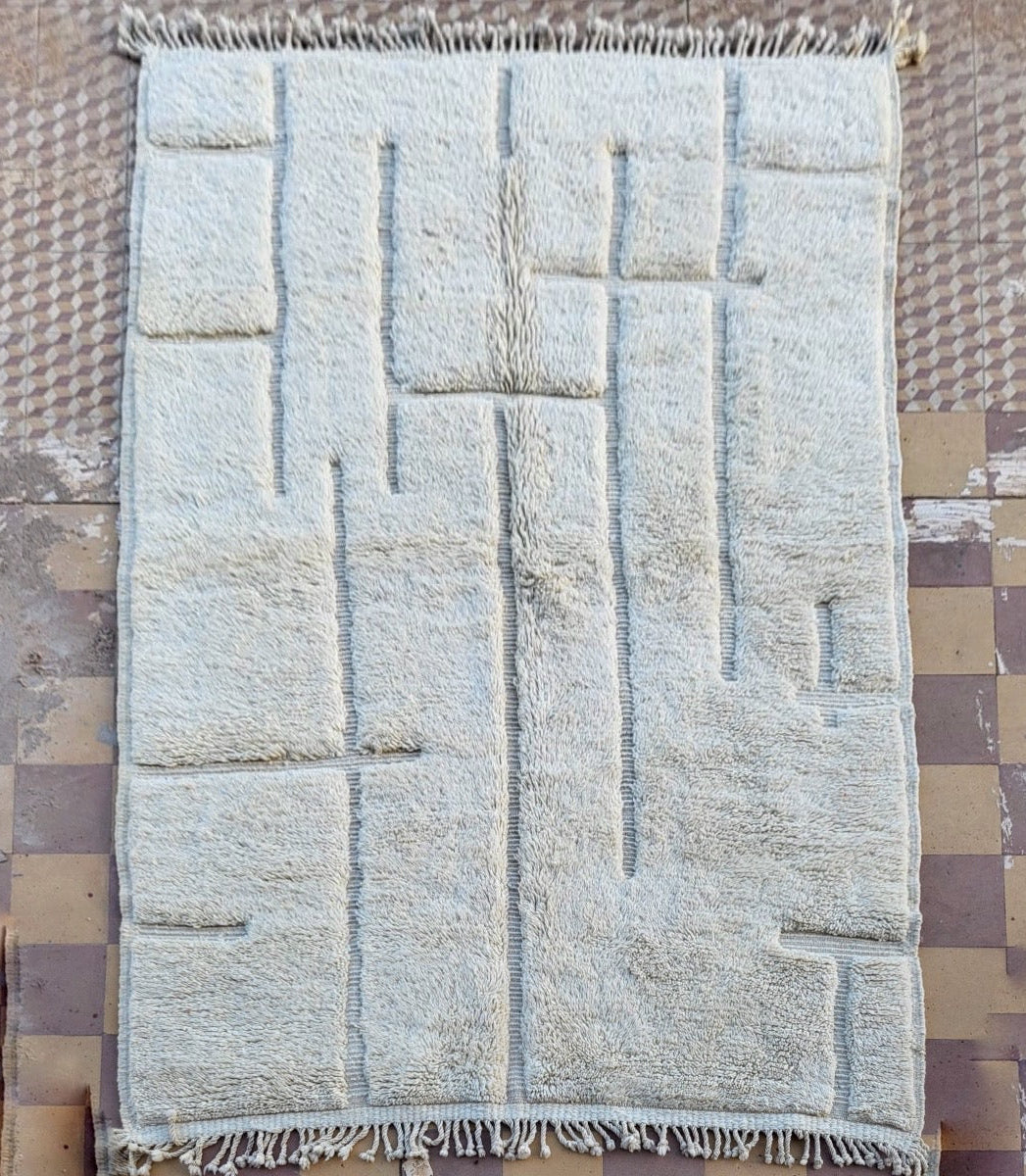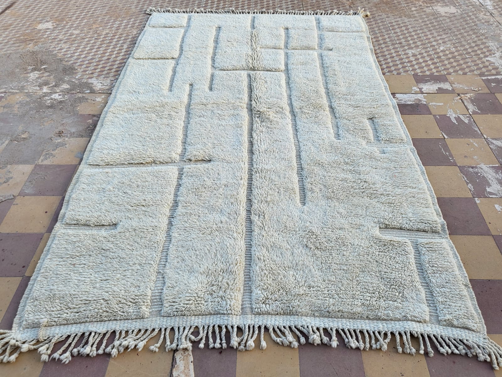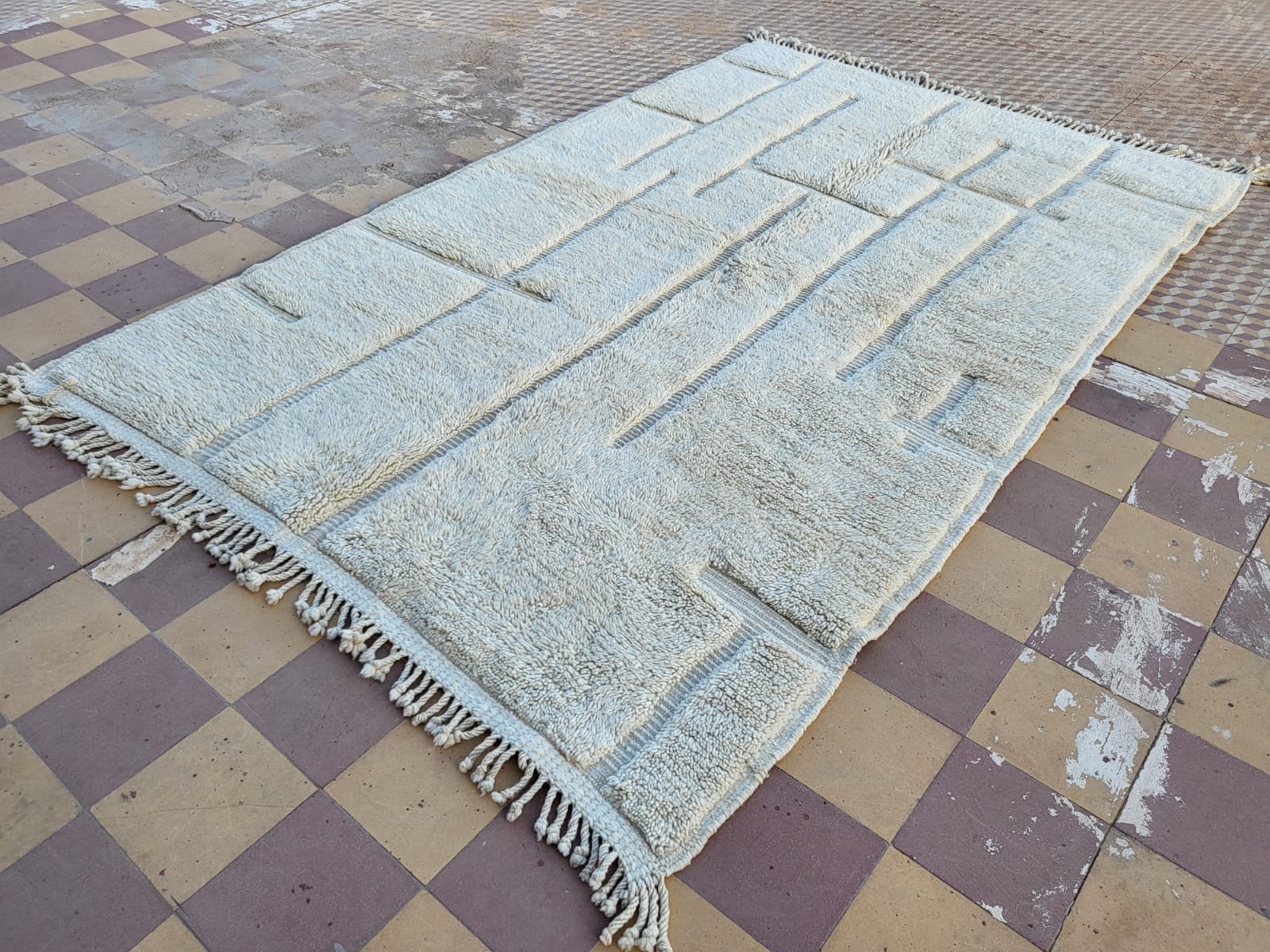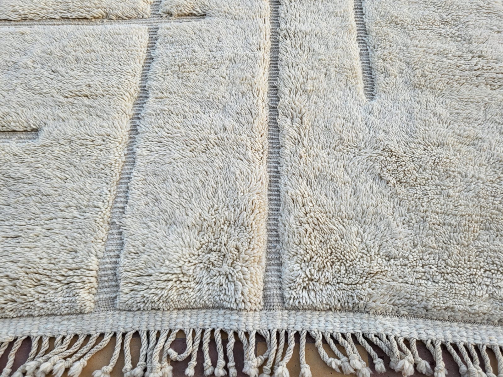 Handwoven in warm ivory wool by the Aït Ouarain tribes, “Dreamline” bridges traditional craftsmanship with a contemporary sensibility. Its plush pile and soothing colour palette make it perfect for minimal interiors, Scandinavian spaces, design-driven homes or any room craving serene sophistication.