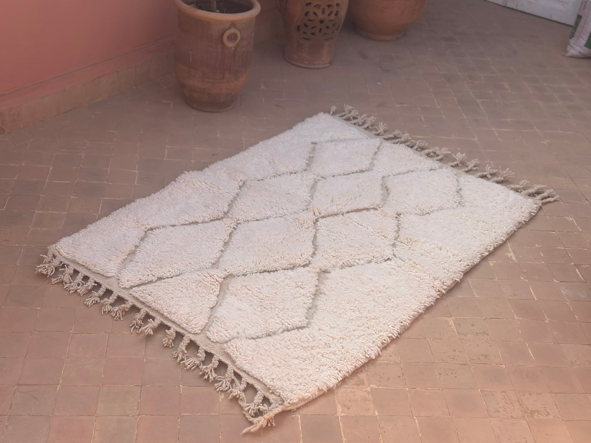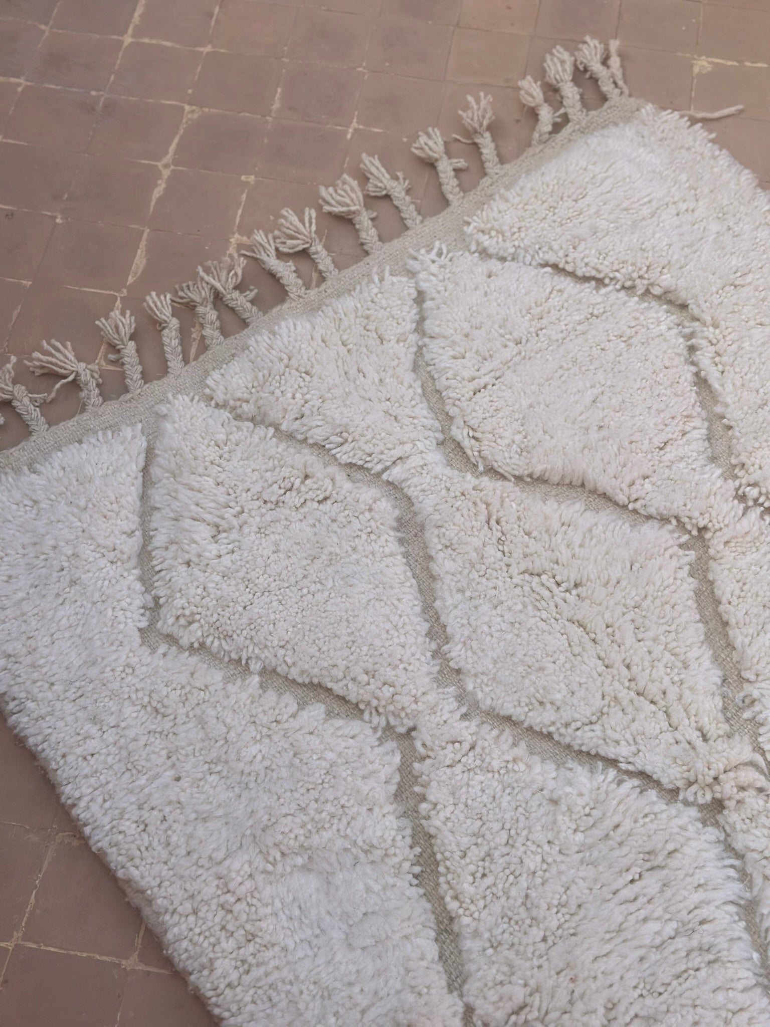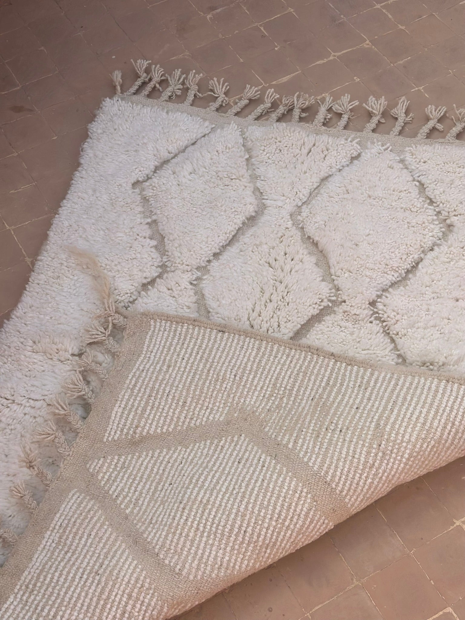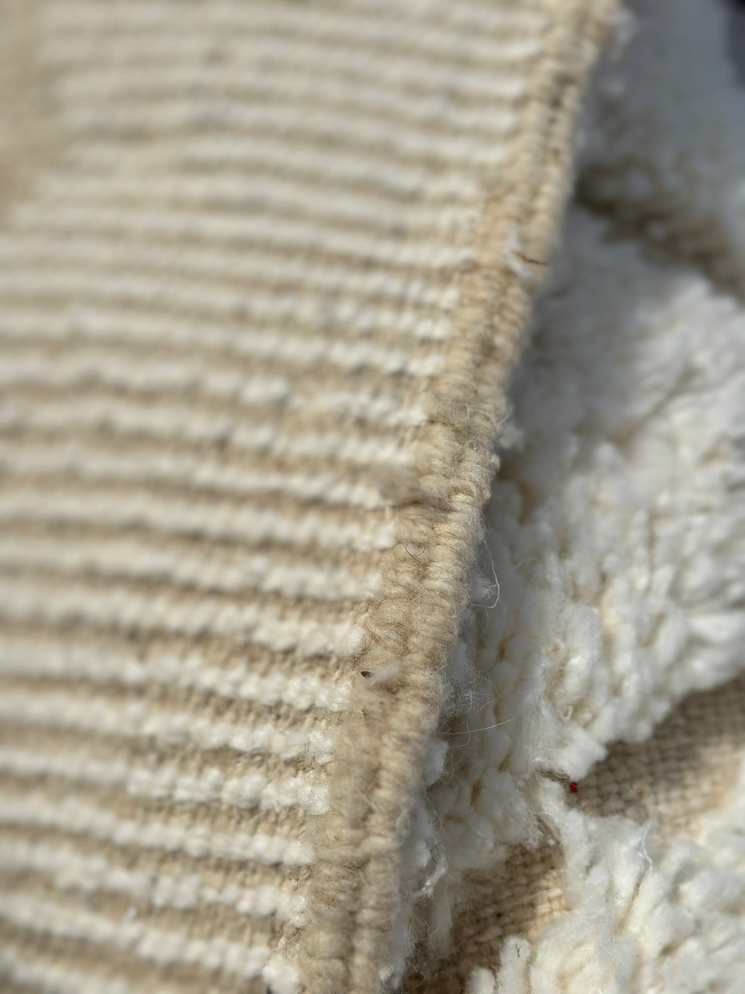 Beni Ouarain rugs are woven by the Berber tribes of the Middle Atlas. Recognised for their plush wool, neutral tones, and ancient diamond symbolism, they bring warmth, calm, and understated sophistication to any interior.