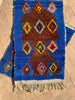 The sister piece to MOGADOR I — equally vibrant, equally joyful. MOGADOR II features deep cobalt fields, warm brown forms and a constellation of colourful diamond motifs. Its energetic palette and classic Boujad symbolism make it a tiny showstopper.