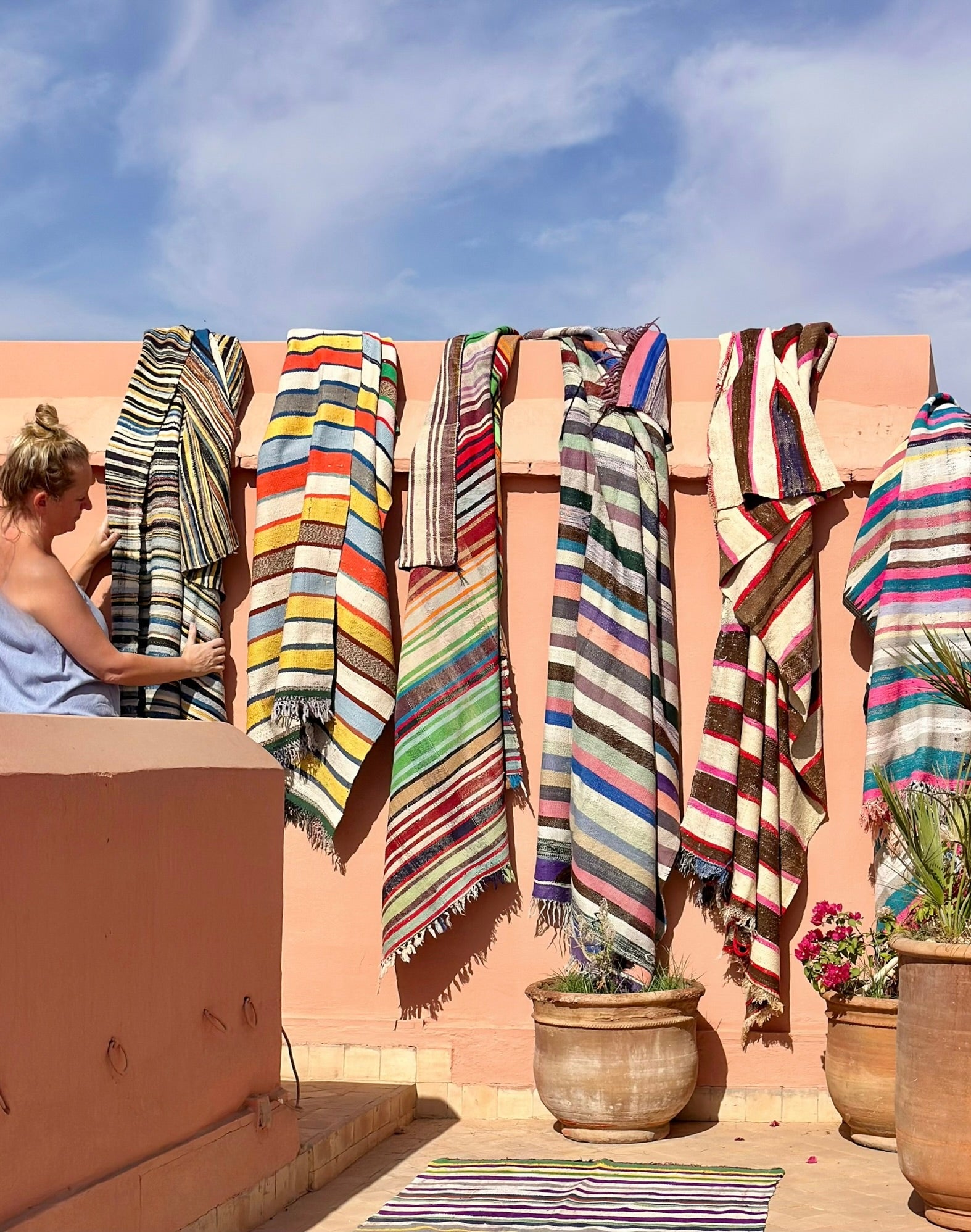 I sourced them during my recent Marrakech trip — from rooftops and tiny atelier courtyards to family homes where the women proudly keep their best woven pieces.