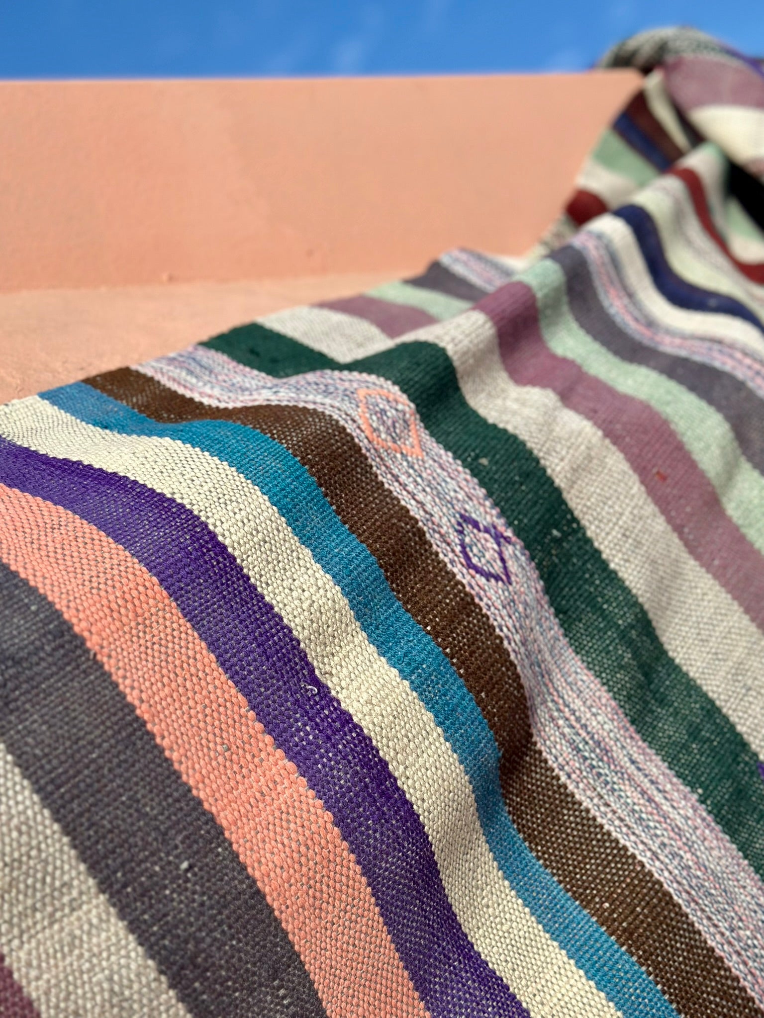 Handwoven in wool or cotton mixes, with rhythmic stripes and unexpected colour pops, they are incredibly versatile: