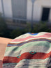 A soft and soothing vintage hayk with gentle stripes in light blue, beige, pastel green and muted pinks & purples.